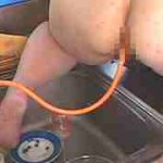 台所仕事に忙しい豊満な次女を、後ろからそっと近づき撫でまわすご主人様。次女は慣れているのか息荒く悶えながらも仕事の手は止めず…主人はスカートの中の巨尻を弄びながら強めのスパンキング。流し台の上に持ち上げた女に、太バイブを使っての快楽責めから浣腸遊びへ。次女はたまらずお腹の中のすべてをシンクへとブチまける!!