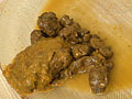 お金のためにやってきた彼女に撮影前の心境を聞いてみると「イヤですね…」と正直な答えが。そんな彼女にうんこ座りをさせ撮影開始!最初にブバーと飛び出るおしっこ。そしてブリブリっと気持ちよくひり出される一本グソ。どんどん床に小山を積み上げます。普段から快便という彼女、太さも量も流石です。お腹を押して最後の一グソまで出し切ろうとする、イヤと言いつつも妥協を許さない性格が垣間見えました。 ※本編中に映像に不鮮明な箇所がありますが、オリジナル・マスターに起因するものです。あらかじめご了承ください。