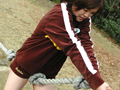 わざわざ公園に出向いて運動をしているめぐみちゃん。外へ出る前におしっこをするのを忘れていたのか、突然尿意に襲われてしまいました。慌てていたのか、気を紛らわそうとして網をまたいだところ、アソコに微妙な刺激が与えられてしまいました。我慢できなくなっためぐみちゃんはとうとう網におしっこをかけてしまうことに。運動の前にはちゃんとおしっこをしておきましょうね。