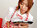 プリティーウェイトレス牧浦彩華ちゃん。登場するなり突然の限界放尿。テーブルの上のカップに向けて、勢いよくほとばしらせちゃってるね。自らの意思なのか、はたまた客の強引な注文なのか、恥ずかしそうに、それでいて力むように歪めたお顔がセクシーですね~。