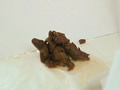 お金のためにやってきた彼女に撮影前の心境を聞いてみると「イヤですね…」と正直な答えが。そんな彼女にうんこ座りをさせ撮影開始!最初にブバーと飛び出るおしっこ。そしてブリブリっと気持ちよくひり出される一本グソ。どんどん床に小山を積み上げます。普段から快便という彼女、太さも量も流石です。お腹を押して最後の一グソまで出し切ろうとする、イヤと言いつつも妥協を許さない性格が垣間見えました。 ※本編中に映像に不鮮明な箇所がありますが、オリジナル・マスターに起因するものです。あらかじめご了承ください。