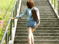 太陽の下、美尻デニムから豪快に漏れ落ちる美少女のおもらし。ショートパンツから晒された生足、ゆれる小ぶりな美尻。階段を上るたびに膀胱が刺激されるのか、徐々に内股になっていく女の子。お尻にぴっちりと張り付いたデニム生地に色濃い濡れ染みが広がっていき…!びちゃびちゃとはしたない音をたてて階段に叩きつけられるおもらし。力が抜けて手すりに寄りかかり、おもらしに翻弄されてしまうのです。