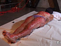 うつ伏せにし、おしり部分のテープに切れ目を入れ医療用大型浣腸のノズルをアナルに差し込む。身動きできない不自由な身体に、ゆっくりとグリセリン浣腸液を注入していく。グリセリン浣腸液が効能をあらわし始めたのか、テープの内側が発汗のせいで白く曇りはじめる。全身を汗でぐっしょりと濡らし、身体を震わせながら必死にグリセリン浣腸液のおぞましい効能に耐えている。※この動画に登場する女性はAV女優ではなく浣腸調○を希望した素人女性であるため個人情報保護のため顔に修正を入れています。