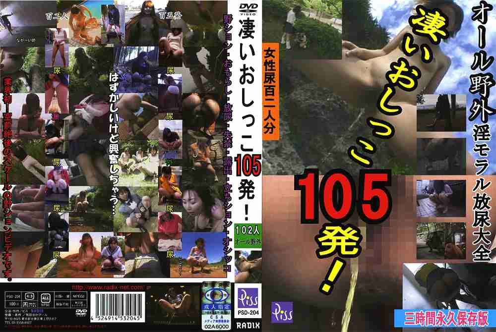 業界初!空前絶後のスケールの野ション映像です。野ション・おもらし・放尿・露出・立ちション・オシッコ・後ろから・前から・ジャージャー・愛液・二人・三人・浴尿・飲尿・視姦・路上・駐車場・草むら・アナル・公園・勢い・雪上・雨…。はずかしいけど興奮しちゃう…百二人!百五発!永久保存版です。