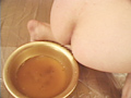 美人未亡人は喪服がお似合い。内証で我々に排泄姿を見せてくれることに。少し高い台の上にしゃがみ込んで大量の自然便。ついでに放出するオシッコの勢いがいい前座になっています。お尻の周りの毛の手入れをいつもやっているように披露してくれました。そして裸体に縄で化粧をしての浣腸。苦しむ顔は天下一品。体中がほてり出し、ついに勢いよく噴射。そして最後は特製洋式便器セットでの大量自然便。こちらも質、量共に文句なし。4台のカメラで色々な角度でおさえてあります。存分にお楽しみ下さい。